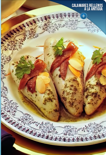 Soak the slices of bread in the wine. Cut of the head and the tentacles of the squid and clean well. Wash under running water and dry. Chop the head, the tentacles and the fins. Put them in a bowl, together with the anchovy fillets, the bread, the pine nuts (or half almonds), the eggs, and a pinch of condiments, salt and pepper. Mix all the ingredients.
